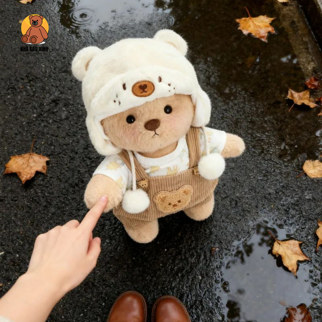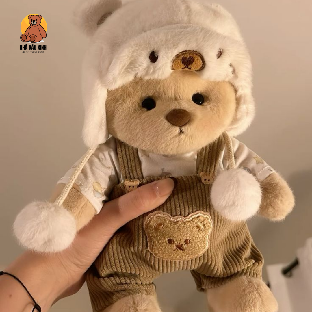 Gấu Bông Cao Cấp Teddy mũ lông yếm nâu là mẫu gấu được Nhà Gấu Xinh tuyển chọn theo phong cách ấm áp – dễ thương – tinh tế, rất phù hợp làm quà tặng cho người yêu, bạn bè hoặc trẻ nhỏ. Gấu khoác trên mình bộ yếm nâu xinh xắn, kết hợp mũ lông tai gấu kèm pom pom mềm mại, tạo cảm giác gần gũi và đáng yêu ngay từ ánh nhìn đầu tiên.